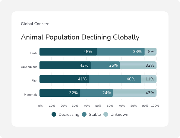 70,000+ Species face extinction, with 48% already in decline.