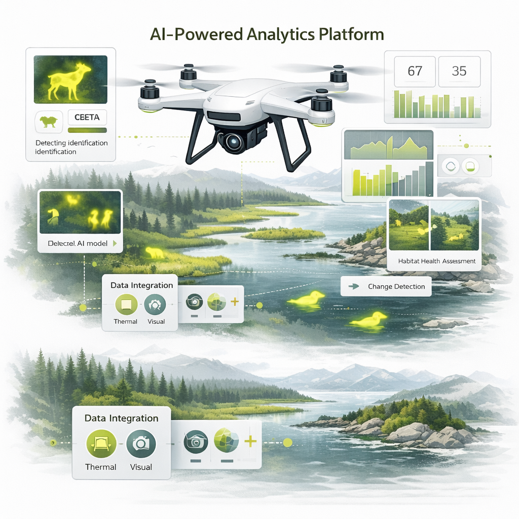 AeroWildTech delivers comprehensive aerial monitoring solutions that combine advanced multi-environment drone hardware, AI-powered analytics, and expert services to provide actionable insights for wildlife conservation and habitat management.