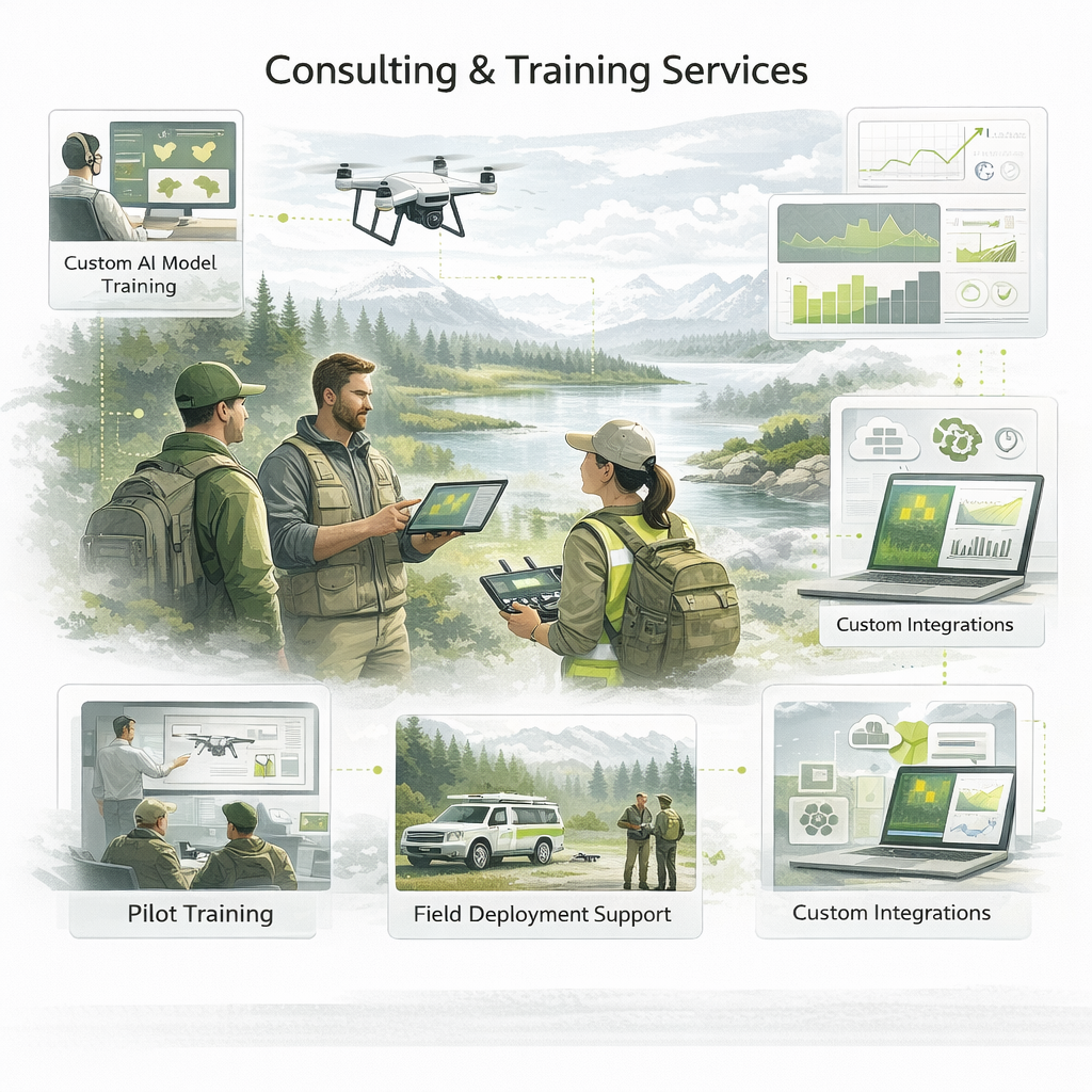Unlike generic drone mapping services, every feature—from sensor selection to flight profiles—is optimized for wildlife monitoring, species detection, and habitat assessment.